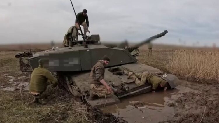 В сети появилось видео, как британский танк "Челленджер" застрял в грязи на тренировочном полигоне в Украине.