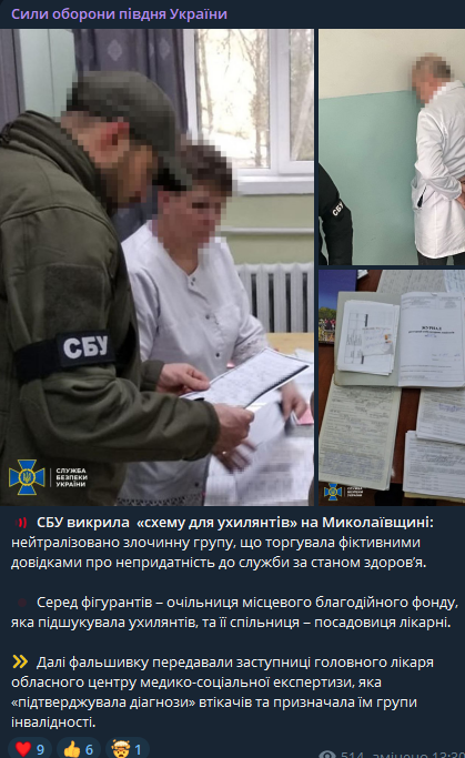 В Николаеве СБУ разоблачила схему для уклонистов. Группа лиц торговала фиктивными справками о непригодности к службе по состоянию здоровья.