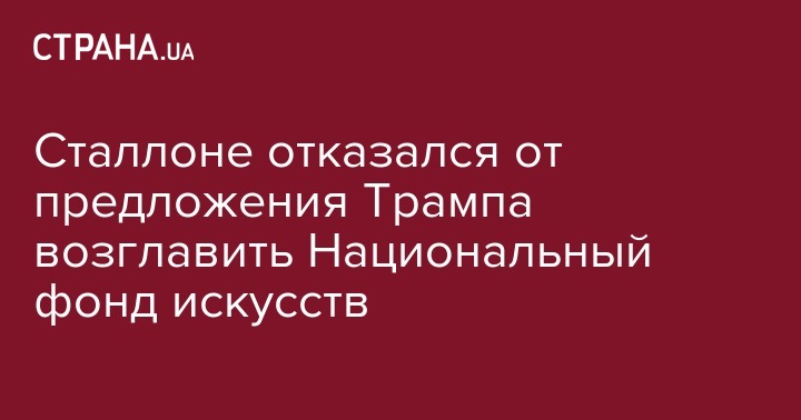 Американский актер Сильвестр Сталлоне отказался от предложенного Дональдом Трампом поста главы Национального фонда искусств. Об этом сообщает Variety.