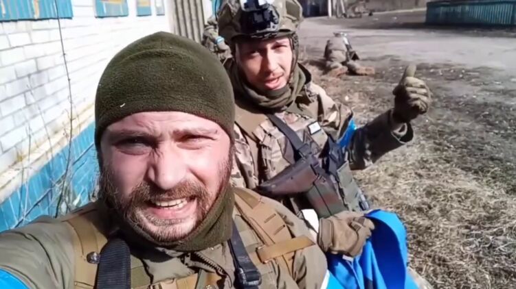 "Ведем бой в Теткино. Название села там подальше, чуть попозже продвинемся. Улицы сильно простреливаются", - заявляют бойцы на видео. На заднем плане в это время в боевых позициях находятся еще трое военных.