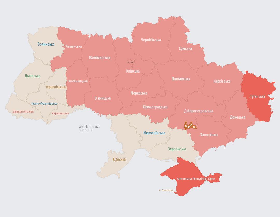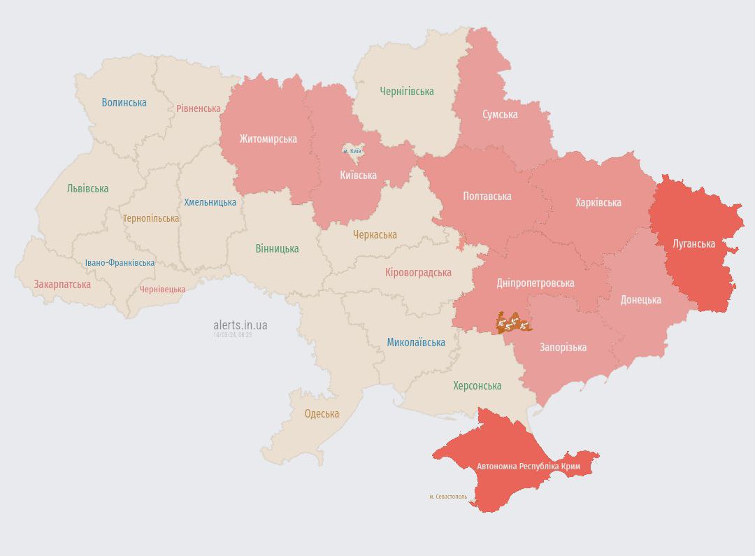 08.25 Тревога во многих регионах, включая Киевскую область.
