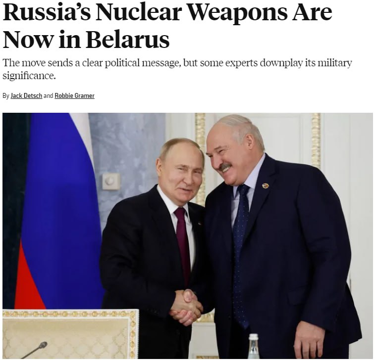 Перед этим американская разведка подтвердила, что российское тактическое ядерное оружие уже размещено в Беларуси. Высокопоставленные чиновники США не верят, что Лукашенко будет иметь какой-либо контроль над арсеналом. Тактическое ядерное оружие, скорее всего, будет полностью контролироваться Россией.