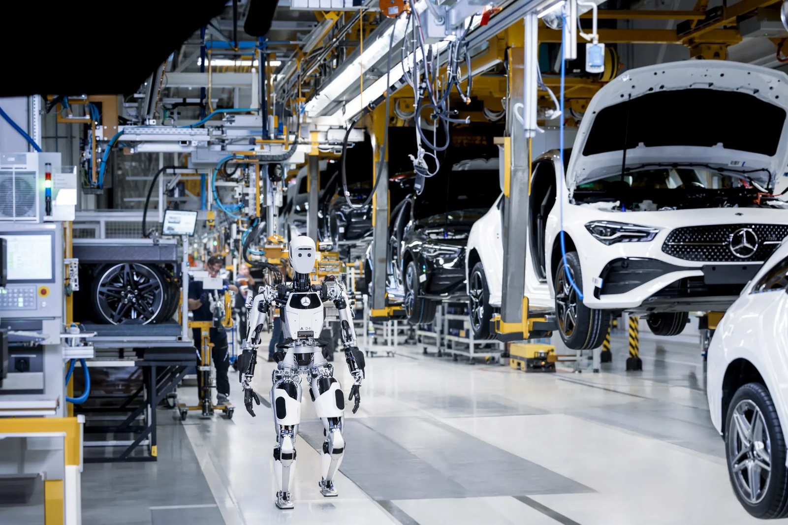 На заводах Mercedes начали работать гуманоидные роботы Apollo производства США. Они будут использоваться для доставки деталей на сборочные линии автомобилей, а также для проведения проверок качества. Каждая модель может поднять до 24 килограммов.