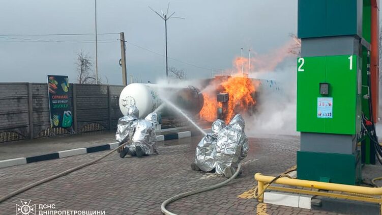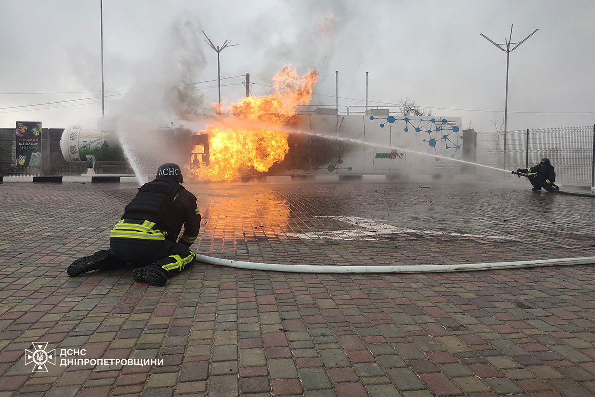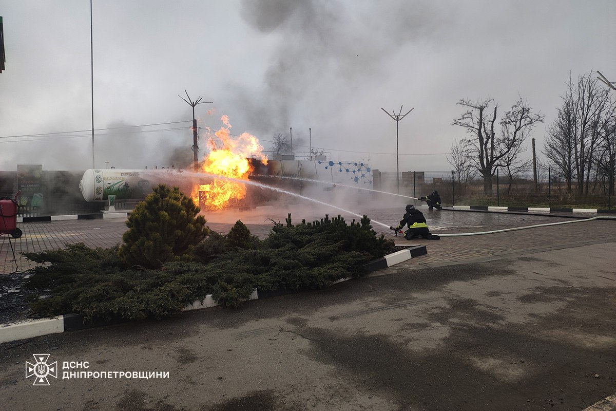 В Никополе на АЗС началася пожар из-за удара РФ. Фото: ГСЧС