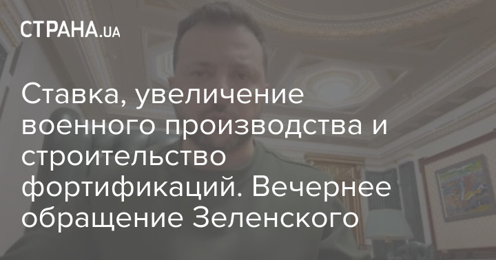 Ставка, увеличение военного производства и строительство фортификаций. Вечернее обращение Зеленского