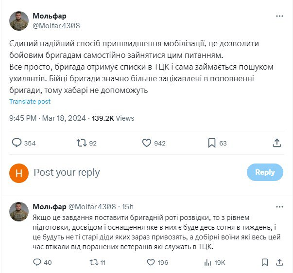 Он добавил: если задачу поиска уклонистов поставить бригадной роте разведки, то через неделю они найдут не тех "дедов", которых мобилизуют сейчас, а сотню "отборных воинов, которые все это время убегали от раненых ветеранов, служащих в ТЦК".