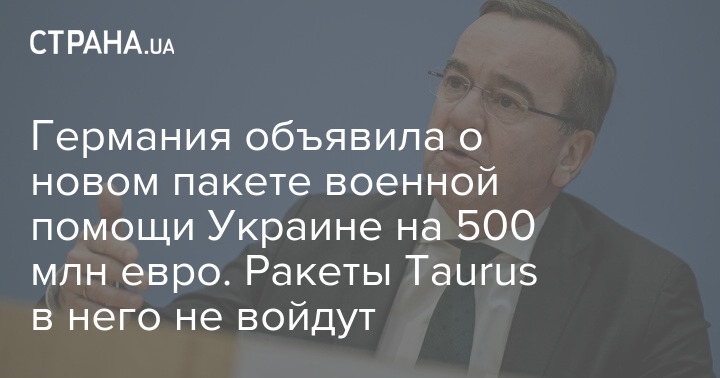 Министр обороны Германии Борис Писториус на сегодняшнем заседании в формате "Рамштайн" анонсировал передачу Украине нового пакета военной помощи на 500 млн евро. Он уточнил, что в нем не будет дальнобойных ракет Taurus.