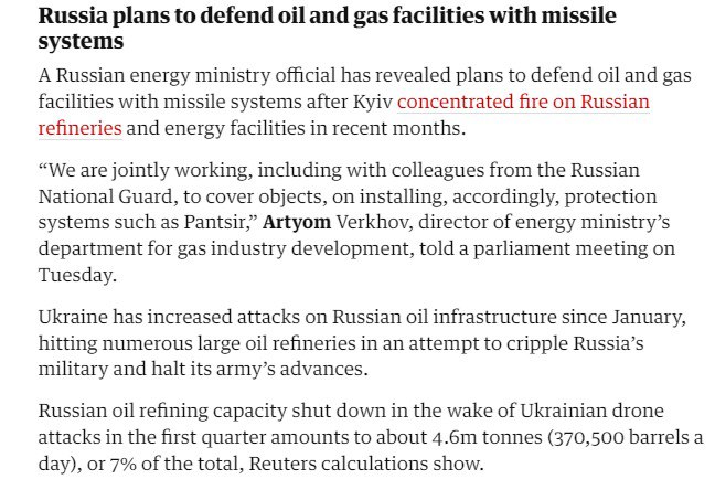 С января Украина усилила атаки на российскую нефтяную инфраструктуру, нанося удары по многочисленным крупным нефтеперерабатывающим заводам в попытке нанести ущерб обеспечению российской армии, напоминает издание.