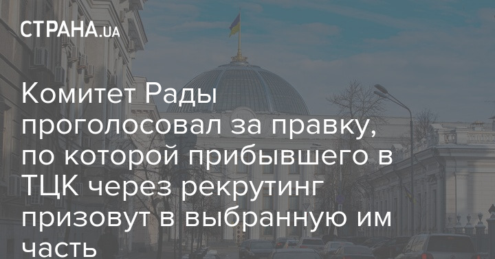 Комитет Рады проголосовал за правку, по которой прибывшего в ТЦК через рекрутинг призовут в выбранную им часть