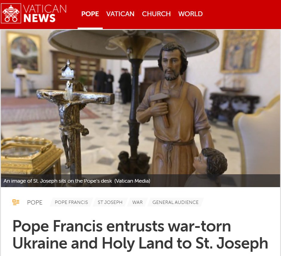 Во время своей еженедельной аудиенции в Ватикане понтифик вспомнил жителей "мученической Украины и Святой Земли, Палестины, Израиля, которые так сильно страдают от ужасов войны".