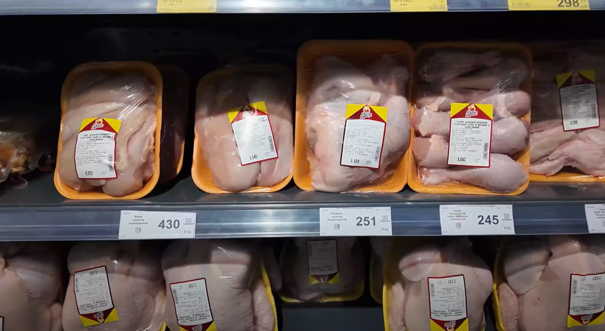 Кило куриного филе в Мариуполе продают за 430 рублей (182 гривны), четверть курицы - 251 рубль (106 гривен).