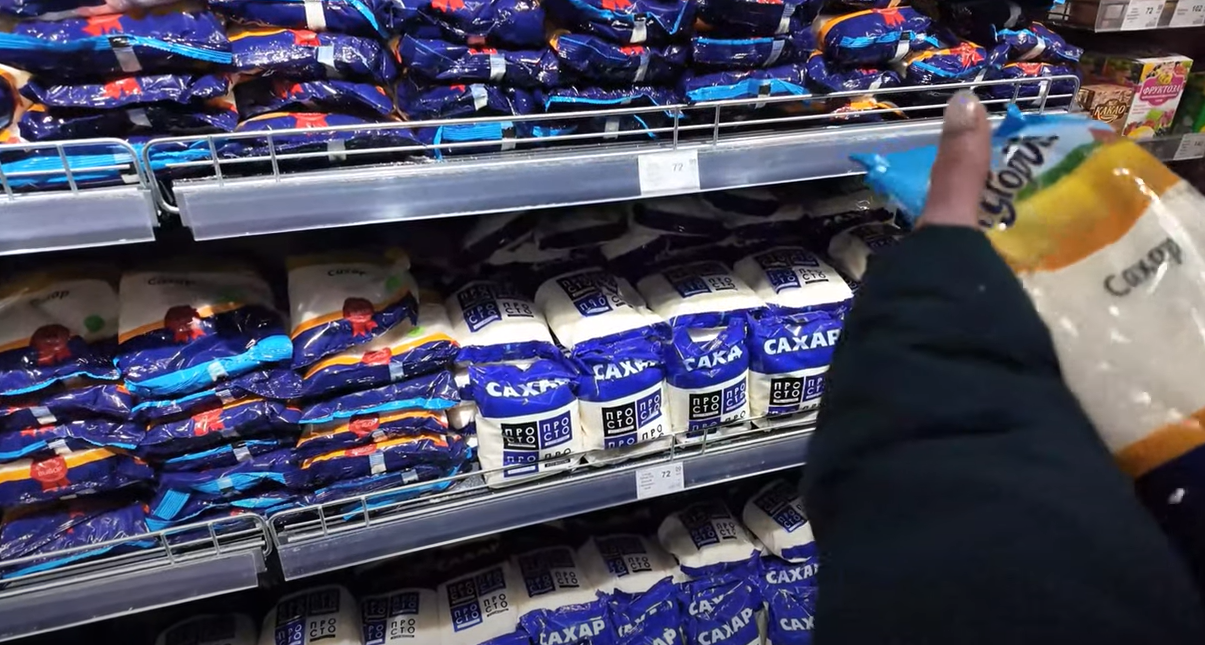 Сахар в Мариуполе - 72 рублей за килограмм (30 гривен). В Киеве - 28,40 гривны за килограмм.