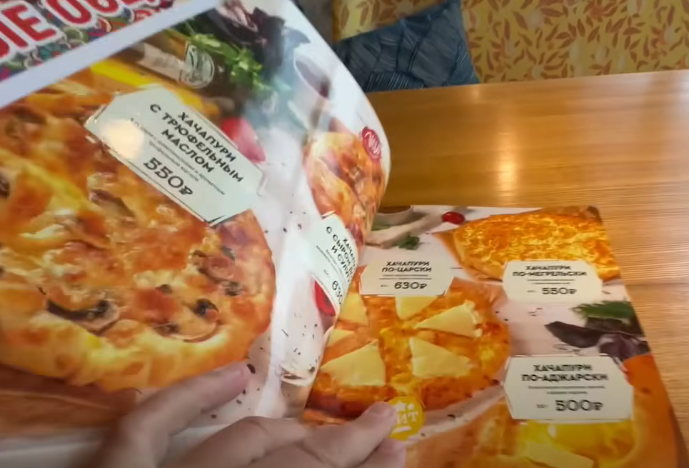 Хачапури по-аджарски здесь стоит 500 рублей (210 гривен), салат "Цезарь" с курицей 390 рублей (165 гривен), с креветками - 480 рублей (200 рублей).
