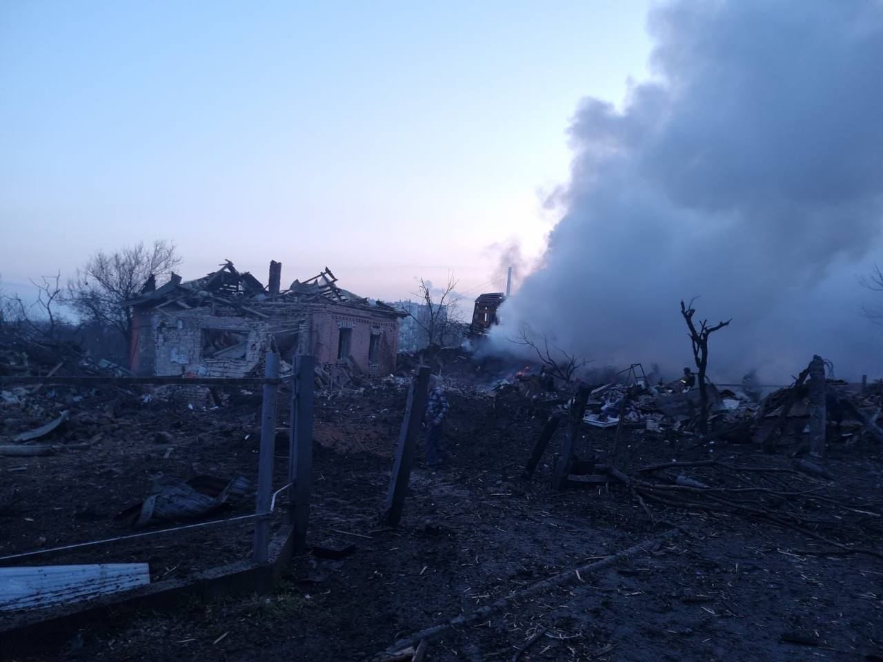 По словам спасателей, которые продолжают ликвидировать последствия, здесь упали обломки ракеты Х-101, боевая часть которой не сдетонировала.