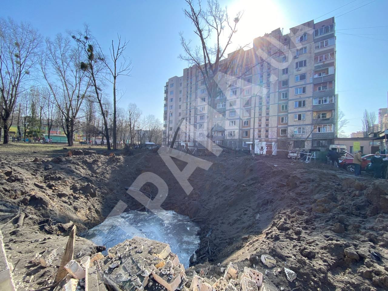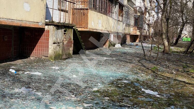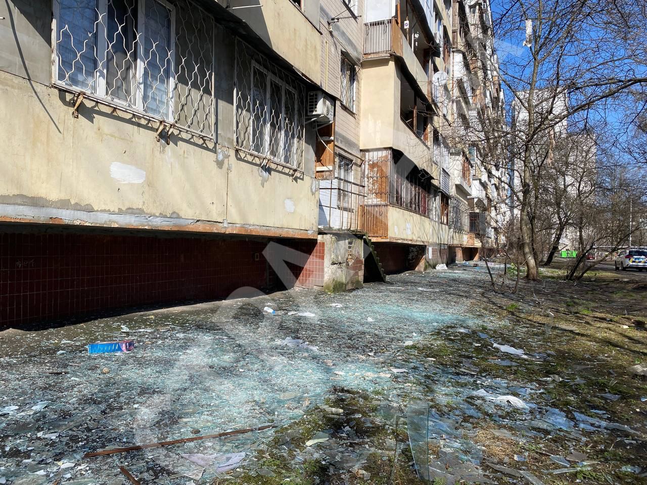 Появились кадры в Святошинском районе Киева после ракетной атаки 21 марта.