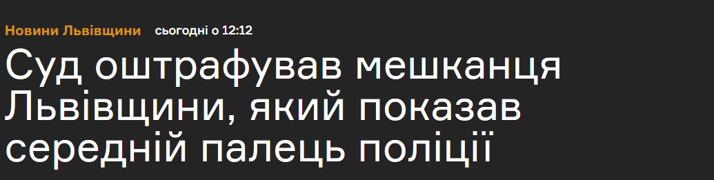 Николаевский районный суд Львовской области оштрафовал на 51 гривню местного жителя, который показал патрульным полицейским неприличный жест - средний палец.