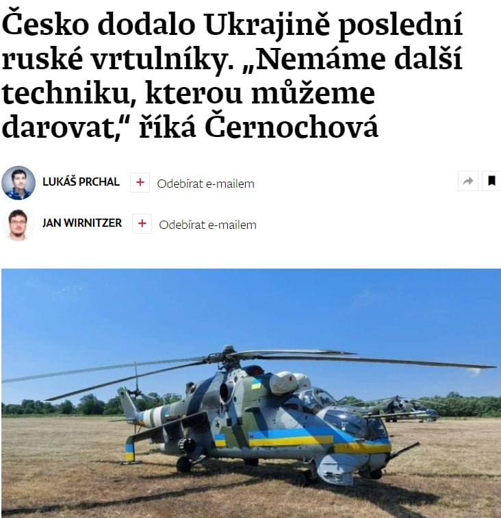 "У нас больше нет оборудования, которое можно было бы пожертвовать", – прокомментировала передачу вертолетов министр обороны Чехии Яна Чернохова.