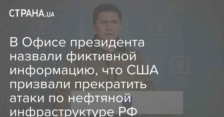 В Офисе президента назвали фиктивной информацию, что США призвали прекратить атаки по нефтяной инфраструктуре РФ