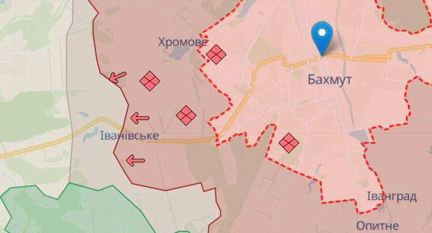 14.35 Минобороны РФ заявило о захвате российской армией села Ивановское (россияне называют его Красным) близ Бахмута.