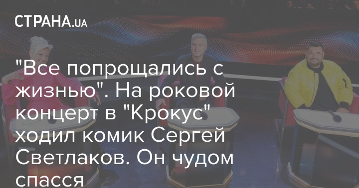 Российский актер-комик и телеведущий Сергей Светлаков в пятницу 22 марта оказался в зале "Крокус Сити Холла", куда пришел на концерт "Пикника" с близкими. Ему удалось спастись во время расстрела зрителей террористами.