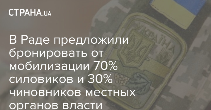Депутаты Верховной Рады Украины предлагают бронировать до 70% сотрудников правоохранительных органов. Также предлагается бронировать до 30% чиновников местных органов власти.