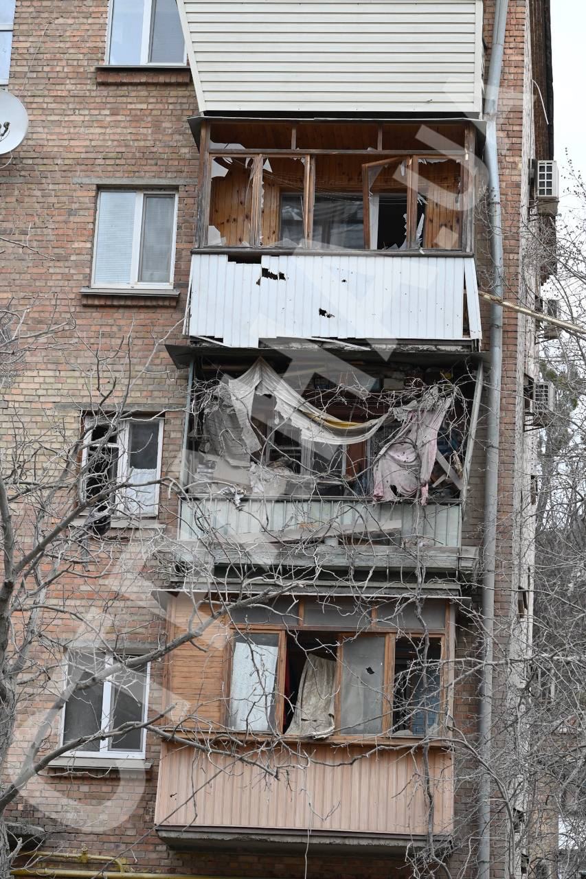 В доме рядом с местом прилета повреждено несколько балконов и выбито около десятка окон.