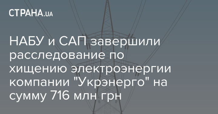 НАБУ и САП завершили расследование по хищению электроэнергии компании "Укрэнерго" на сумму 716 млн грн
