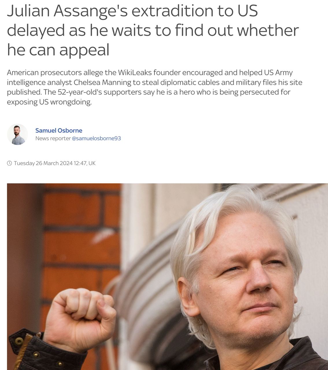 Напомним, в июне 2022 года в МВД Британии приняли решение выдать Ассанжа США, где ему грозит 175 лет тюрьмы.