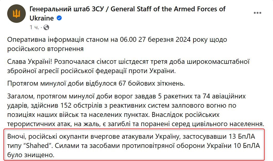 В среду, 27 марта, в Украине идет 763-й день войны с Россией.