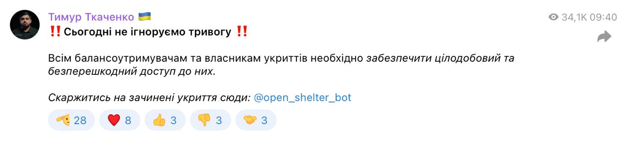 10.09 Не игнорировать воздушную тревогу сегодня призывает замглавы Минстратегпрома Тимур Ткаченко.