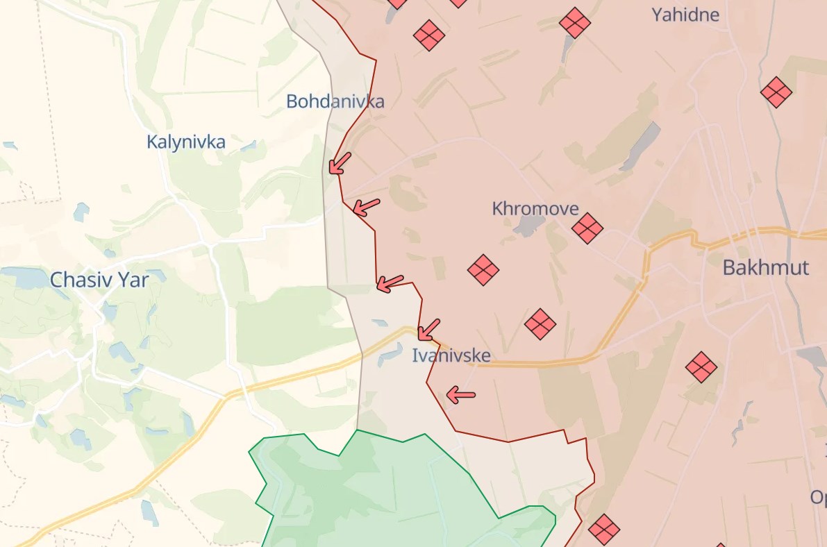 Россияне продолжают продвижение в районе Часов Яра под Бахмутом.