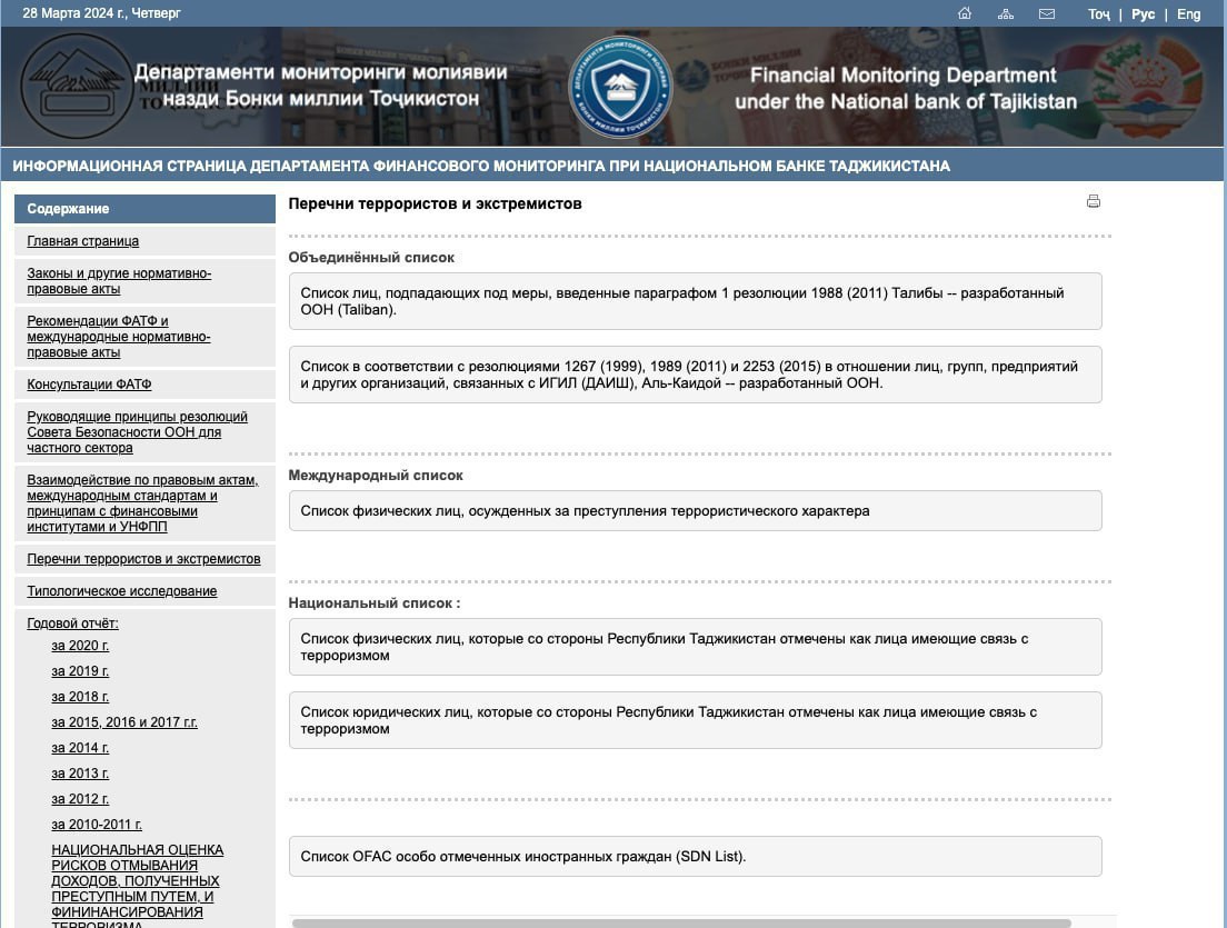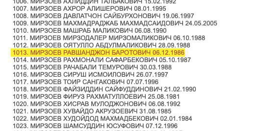 Имя Равшанджона Мирзоева фигурирует в списке Нацбанка Таджикистана, где находятся лица, связанные с терроризмом.