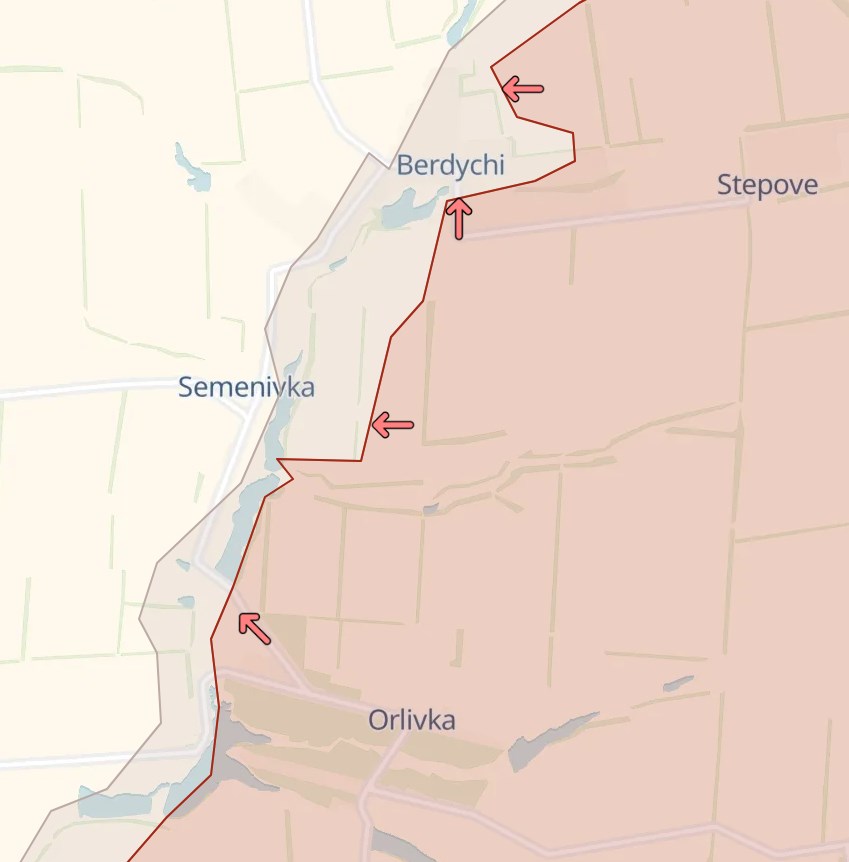 Также, судя по изменениям в карте паблика, россияне вытесняют ВСУ с западной окраины Орловки, а также приблизились с востока к Семеновке.