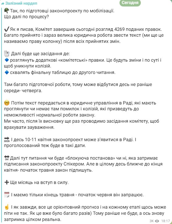 Как мы сообщали, сегодня комитет Рады по вопросам национальной безопасности, обороны и разведки рассмотрел все депутатские поправки к законопроекту об ужесточении мобилизации. Этих правок было больше 4 тысяч.
