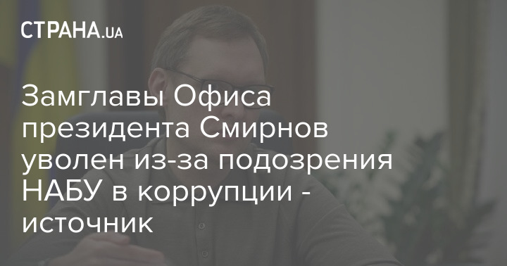 По данным источников "Страны" отставка Смирнова связана с тем, что Национальное антикоррупционное бюро Украины готовится предъявить ему подозрение по статье о незаконном обогащении.