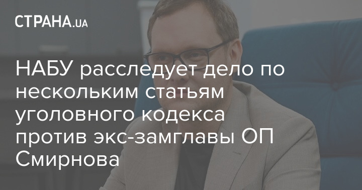 Против уволенного вчера экс-замглавы Офиса президента Андрея Смирнова НАБУ расследует дело по нескольким статьям уголовного кодекса.