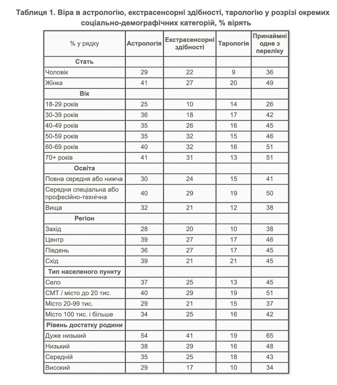 Почти половина опрошенных украинцев (43%) заявили, что верят в астрологию, экстрасенсорные способности или тарологию, а 56% - не верят.