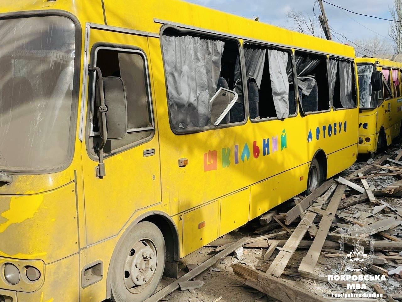 В эпицентре удара оказалось коммунальное предприятие. Повреждены школьные автобусы, гуманитарный транспорт и два админздания.