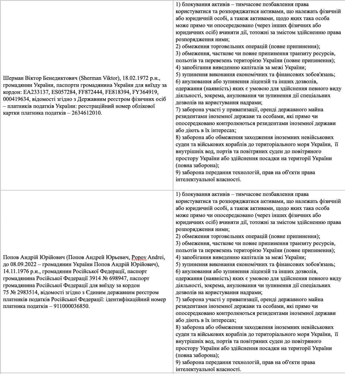 13:24 Президент Украины Владимир Зеленский продлил санкции СНБО против ряда бизнесменов, в том числе украинских, а также ряда украинских компаний, связанных, судя по всему, с указанными лицами.