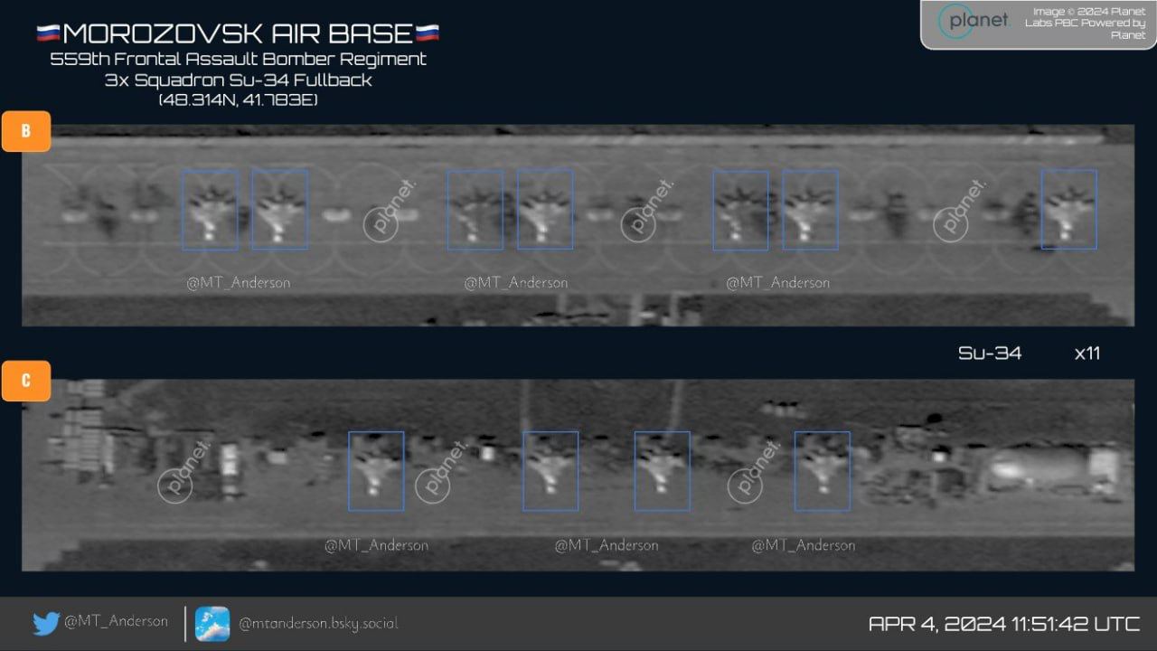 По словам источника, на авиабазе базируются российские тактические бомбардировщики типа Су-24 и Су-24М, которые РФ используют для нанесения ударов управляемыми авиабомбами по украинским военным и прифронтовым территориям.