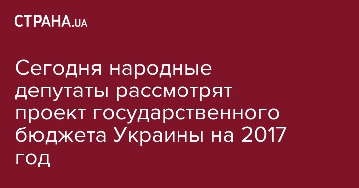 Сегодня народные депутаты рассмотрят проект государственного бюджета Украины на 2017 год