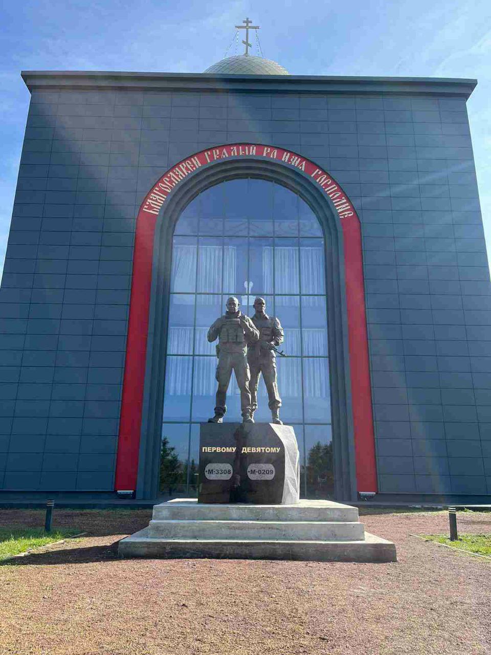 Монумент появился на закрытой территории около мемориальной часовни, построенной в память о "вагнеровцах". Он представляет собой постамент, на котором стоят в полный рост Пригожин с рацией и Уткин с автоматом. На постаменте написаны позывные руководителей ЧВК: Первый (Пригожина) и Девятый (Уткина).