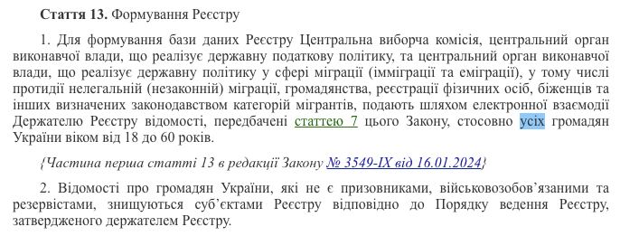 При этом в тексте говорится, что операторы реестра - Минобороны, Генштаб ВСУ, СБУ, Служба внешней разведки - будут удалять данные о гражданах, которые не являются военнообязанными.