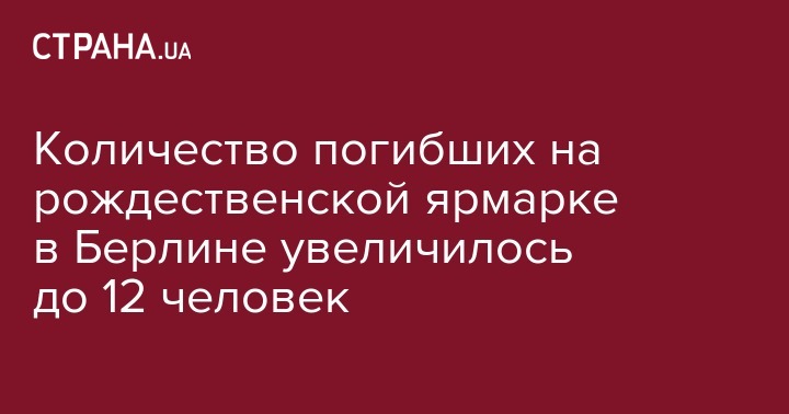 Количество погибших на рождественской ярмарке в Берлине увеличилось до 12 человек