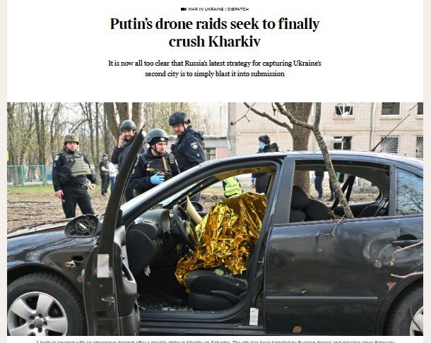 The Times в свою очередь пишет, что "стратегия захвата второго города Украины состоит в том, чтобы просто взорвать его и заставить подчиниться". "Рейды путинских дронов направлены на то, чтобы окончательно разгромить Харьков", - сообщает издание.