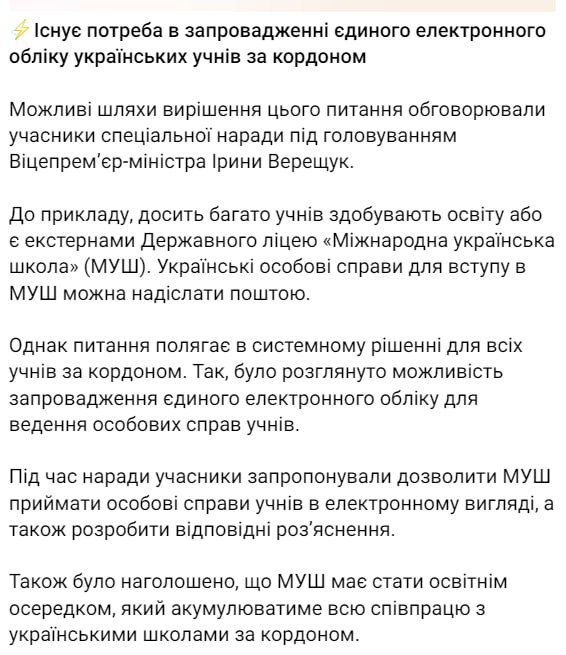 Сообщается, что реестр хотят создать на базе гослицея "Международная украинская школа" (МУШ).