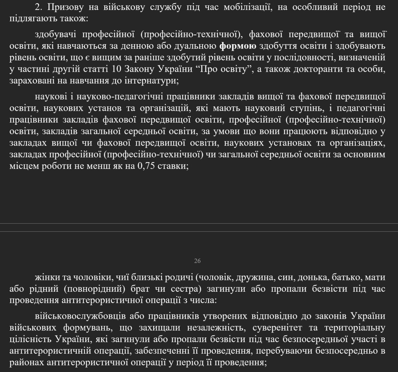 Кто имеет право на отсрочку от мобилизации в новом законопроекте. Список