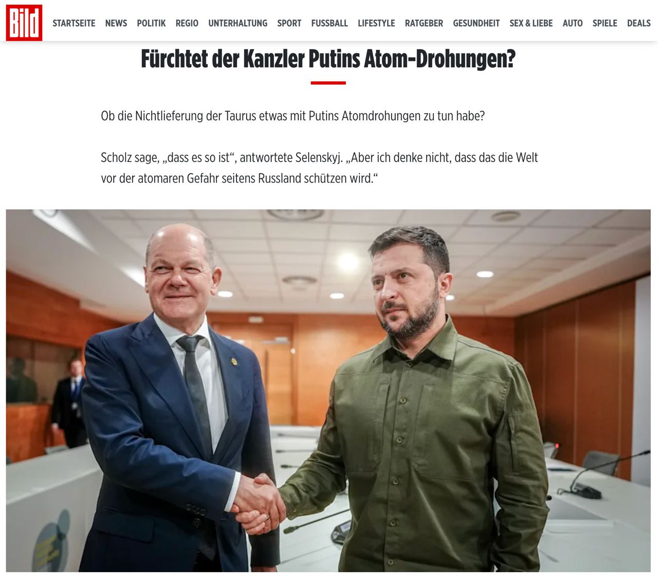 При этом публично канцлер ранее заявлял, что не поставляет Taurus потому что не хочет втягивать Германию в войну.
