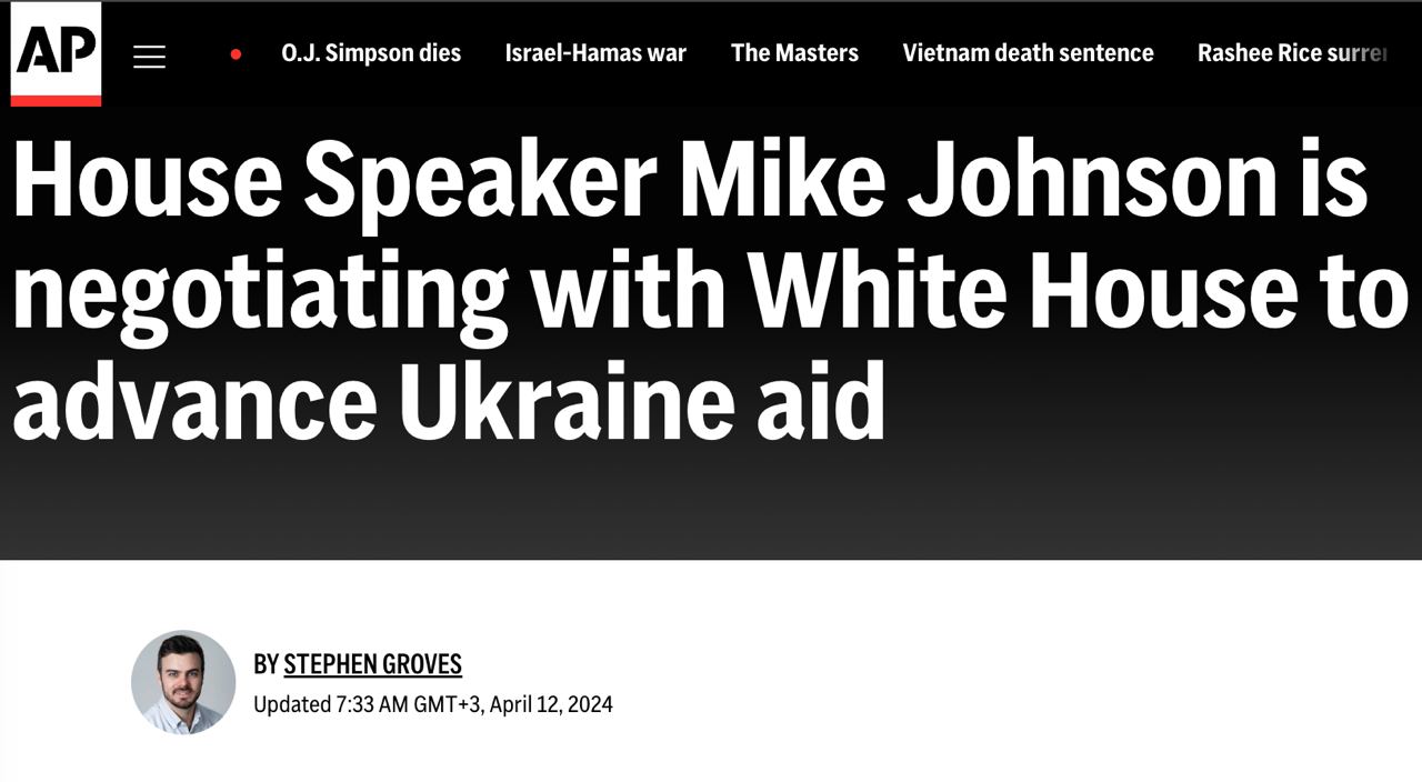 12:55 Спикер Палаты представителей Джонсон обсудил с Белым домом новый пакет помощи Украине, а также Израилю, но "соглашения достигнуто не было".