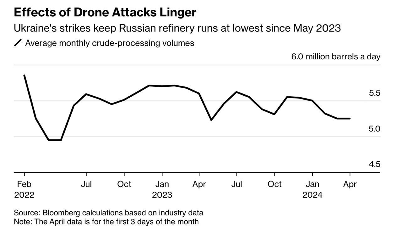 При этом пока украинские атаки, как пишет издание, существенного эффекта не имели, так как добыча в РФ сохранилась в пределах обычного, а многие предприятия сумели быстро провести ремонт.